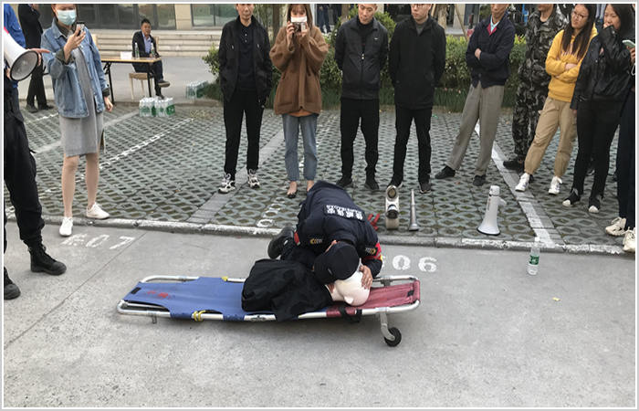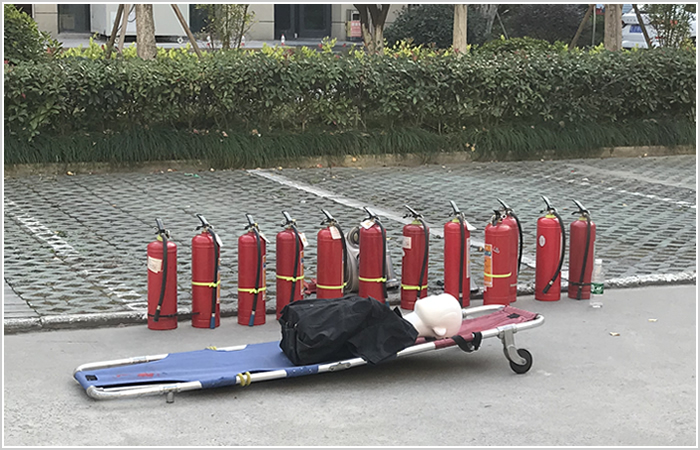 火災(zāi)疏散逃生講解、消防水帶使用及演練、心肺復(fù)蘇講解及演練。